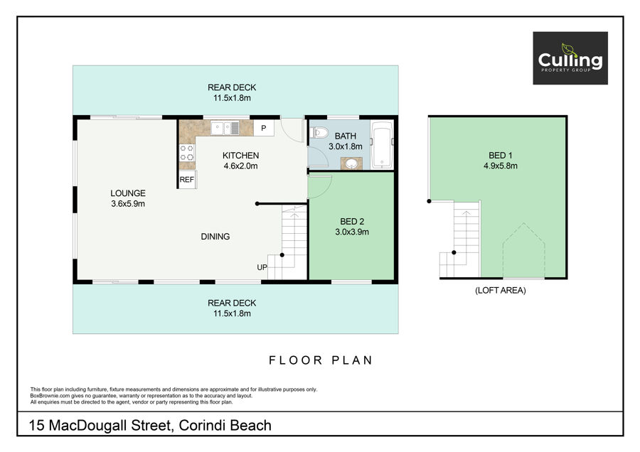 breeze. The on-trend bathroom features a deep bath and timber top vanity with carved granite sink. The spacious 2nd bedroom is on this level. Up the stairs is the generous main bedroom loft complete with east facing Dormer window adding to the character of this coastal beauty. The home is elevated and allows for no shortage in storage for the big toys, plus the property is complete with a recently built 7m x 6m colourbond shed with power, including a 15amp plug. The home is complemented by the colourful front gardens and a veggie patch in the fenced rear yard. Corindi Beach is a coastal village ideally positioned on the map, with just a 25 minute drive to Coffs Harbour and 35 minute drive to Grafton. Stroll to the Amble Inn for a hearty meal, there is a corner shop, chemist, café, preschool and primary school, not to mention an array of activities for children.