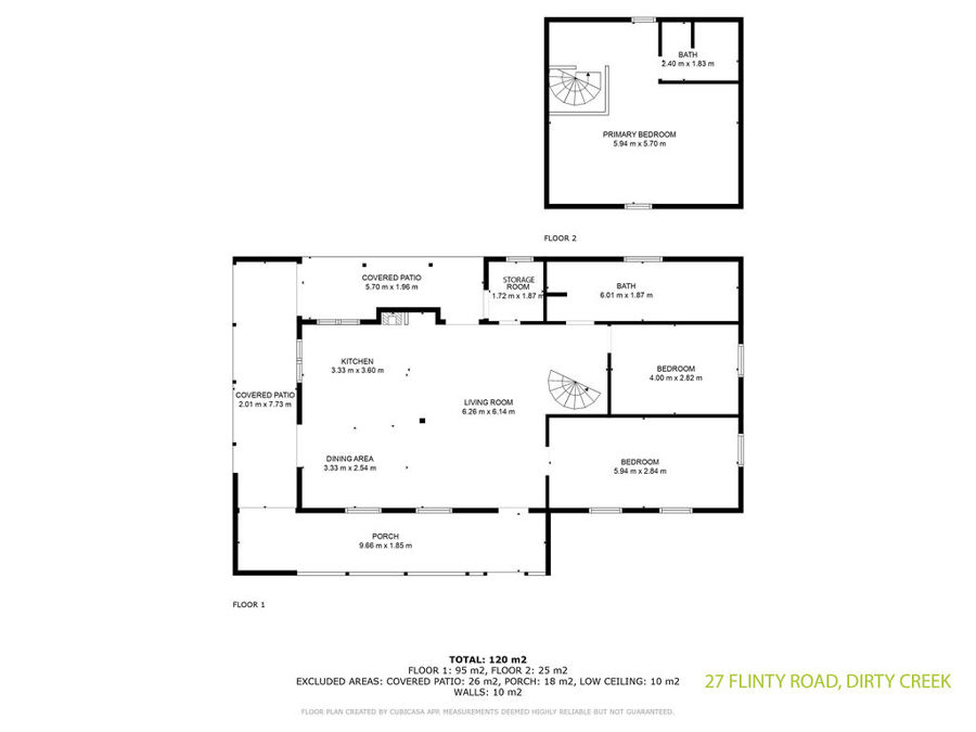 The spacious open plan layout features raked ceilings, exposed beams and leadlight windows evoking rustic country charm. The kitchen is neat and functional, anchored by a slow combustion stove overlooking the living and dining area, extending through French doors to an enclosed courtyard. The plan offers a bathroom/ laundry combination with linen press, enhancing usability, plus a separate storage room.