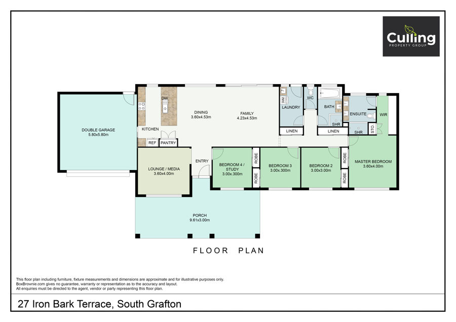 Stepping through the oversized timber door you are led to a spacious sunlit open plan design, with the kitchen being the anchor of the room featuring elegant stone benchtops, a 900m ceramic cooktop, an under bench oven, ample storage space, a built-in fridge, double door pantry, and a dishwasher. The kitchen shares the space with the dining and living room. You will also find a separate media room perfect for the modern lifestyle.